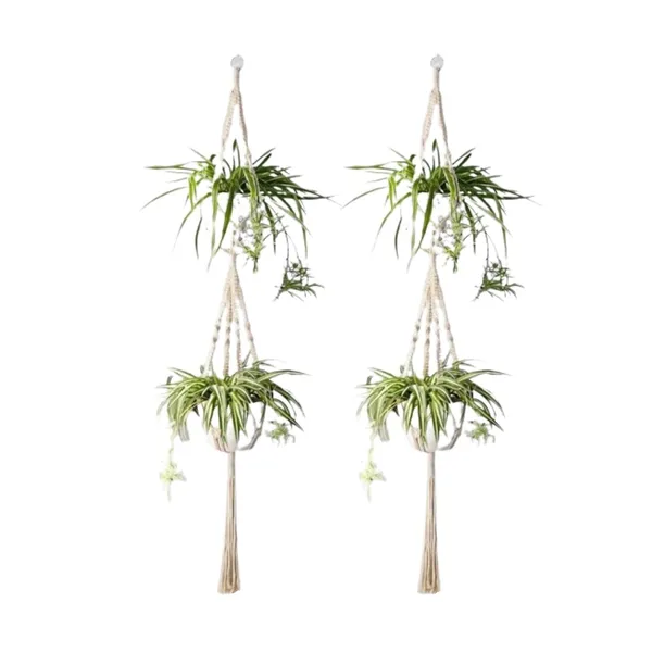 Double Two Tier Planter Cotton Twisted Outdoor/Indoor Hanger [Without Pot] ..More